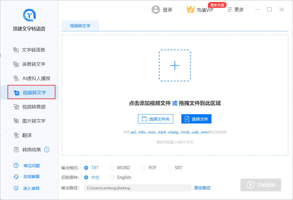 Đi đến chức năng "Video to Text", xác định thông tin văn bản của tệp video và tạo tài liệu để lưu vào máy tính. Hỗ trợ avi, mkv, mov, mp4, mpeg, rmvb, wmv và các định dạng video khác.